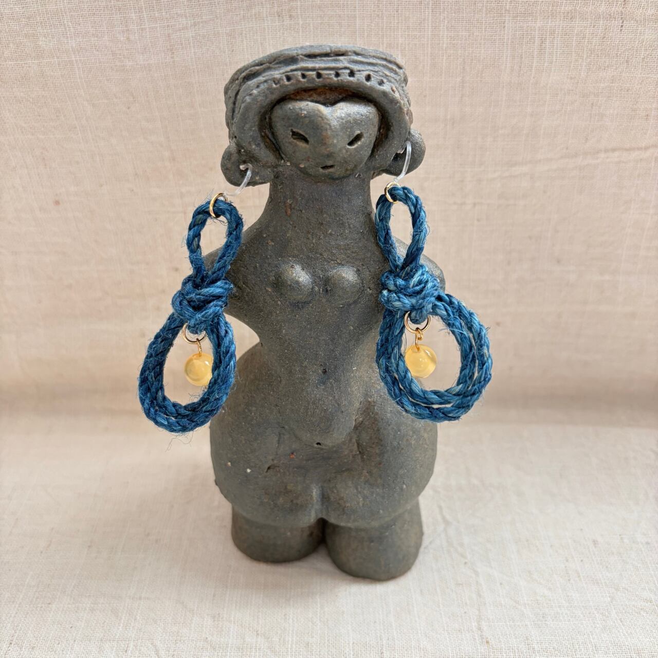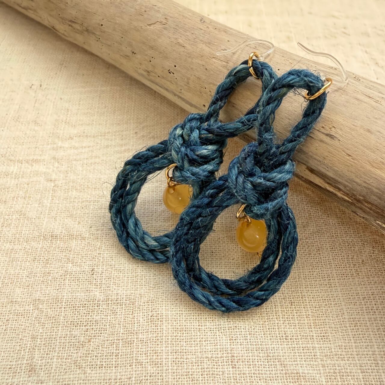 シトリン&藍染め精麻の茗荷(みょうが)結びピアス/イヤリング